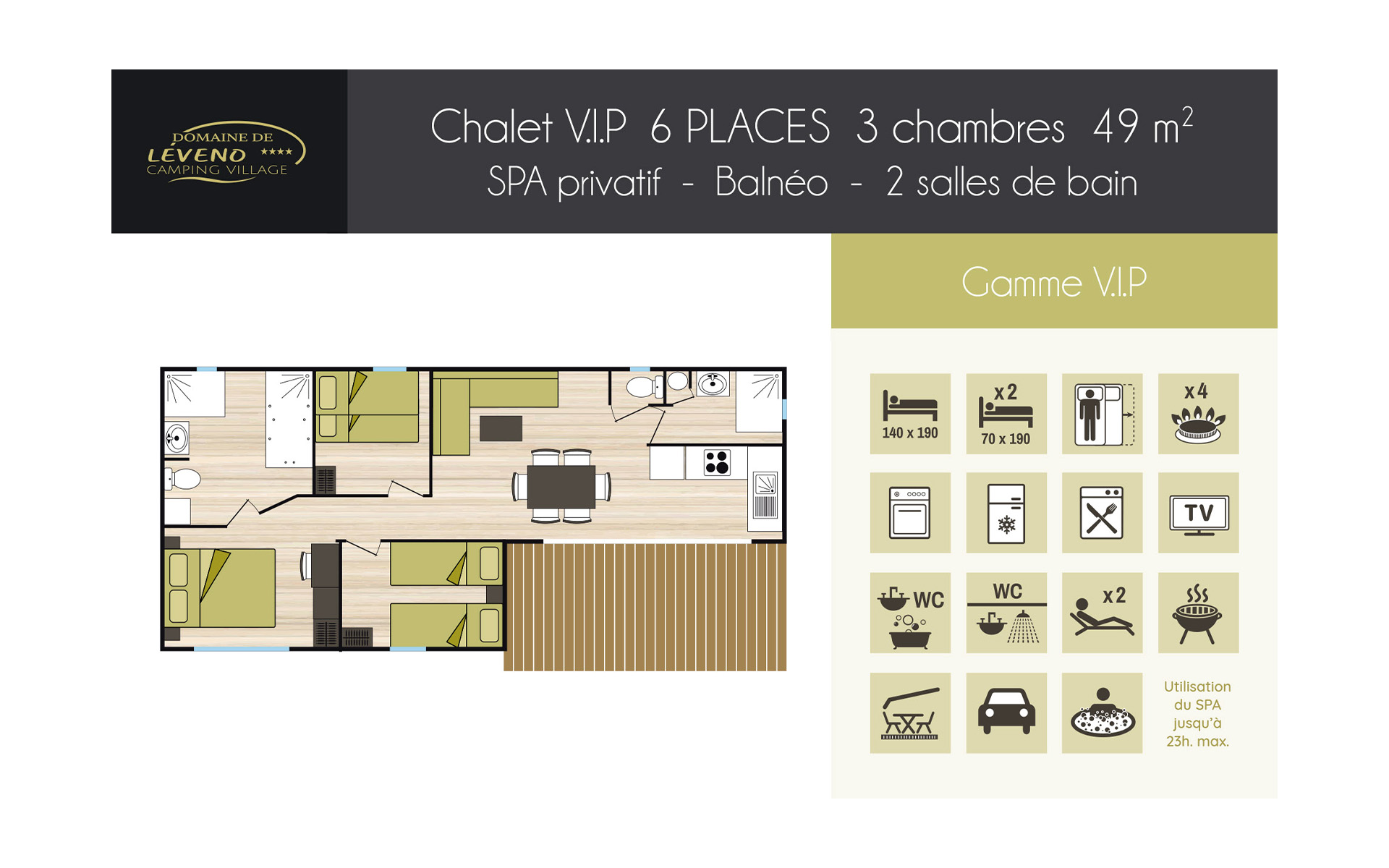 Chalet 3 chambres avec spa privatif et baignoire Balnéo dans la suite parentale. Parcelle privative sans vis-à-vis.