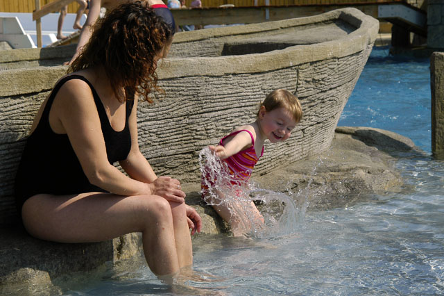 The outdoor section is the most incredible part of the water park. Enjoy everything from swimming, fast-current or slow-river bathing, water games, slides, and a wave pool... A unique experience to share with the whole family. For enhanced pleasure, anatomical and hydro-massage benches are accessible to all. Just let yourself be rocked to the rhythm of the water jets. A multi-lane water slide offers a thrilling sliding experience, and there are sensational water slides for the brave. Enjoy a wide array of freely accessible water games such as geysers, slow river or whirlpool baths. We also offer a fun paddling pool adapted to young children, where the little ones can have fun in the water, under their parents’ watchful eye.