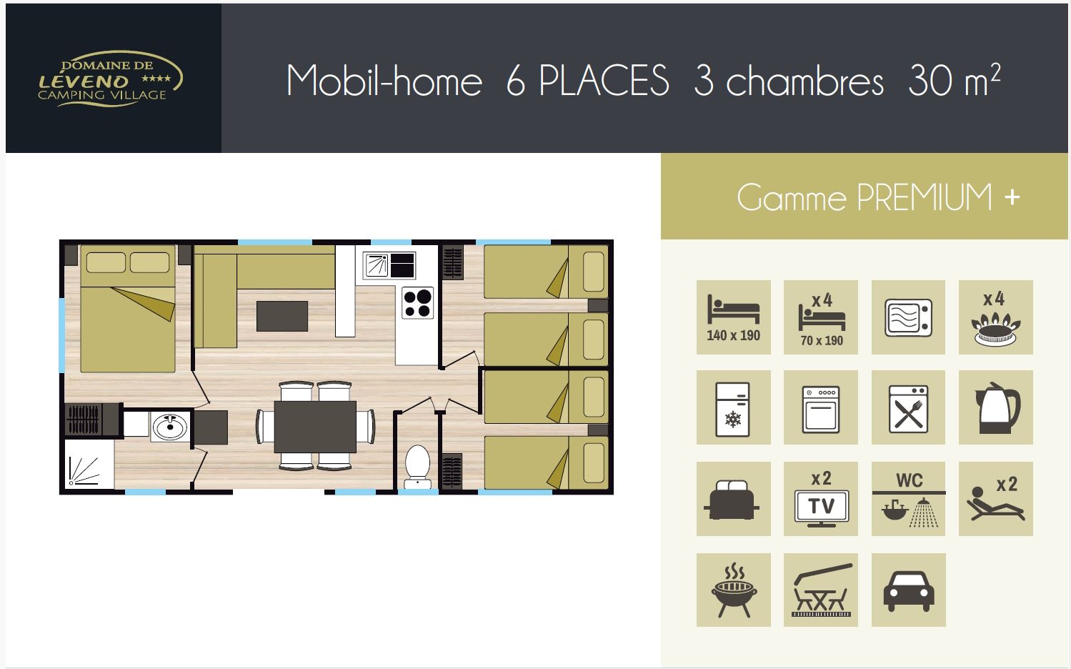 Photos et plans non contractuels ainsi l’aménagement de l’hébergement est susceptible de varier selon les modèles présents sur le camping.